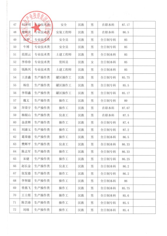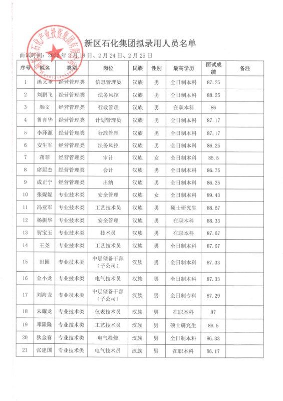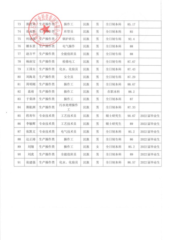 蘭州新區石化產業投資集團有限公司關于潘又圣等91人錄用的公示