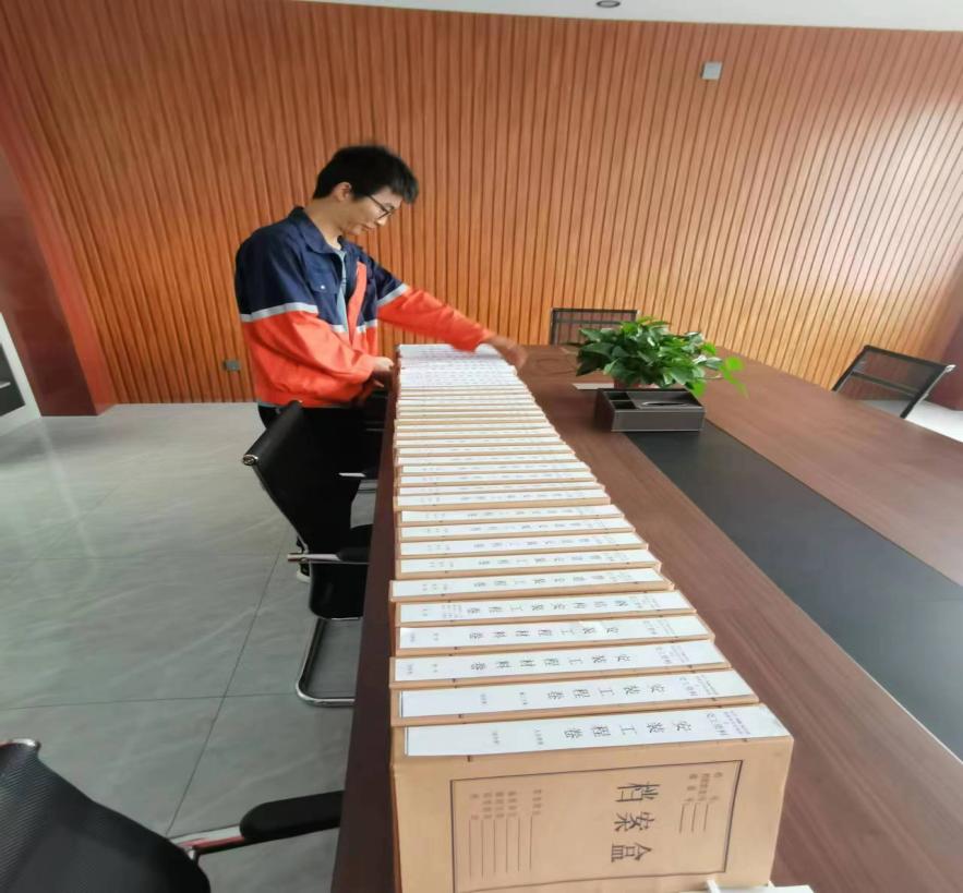 組卷過程中所有人員分工明確、責任到人,歷時一周時間大家齊心協力最終高標準完成電氣、自控、設備、管道、結構、防腐絕熱,施工過程和交工技術文件資料共計53冊。經監理單位檢查驗收合格后組織施工單位移交建設單位存檔。