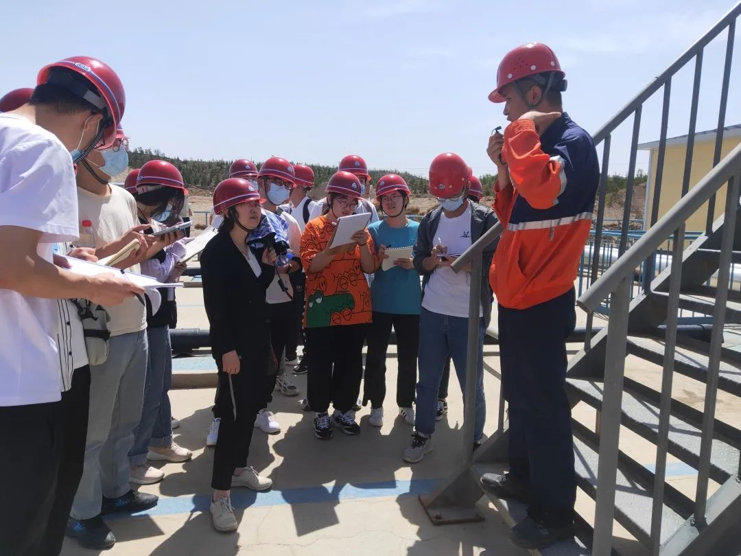 首先,在博石環保公司工作人員的講解下,學生們詳細了解了廠區總體建設概況、工藝流程及裝置圖,并由安全員為參觀人員集中做了入場安全教育培訓。隨后,在相關技術人員帶領下,學生們參觀了廠區中試裝置實驗室、污水處理工藝系統各個工段,并對重點工序的流程及運行情況進行了現場講解和答疑交流。